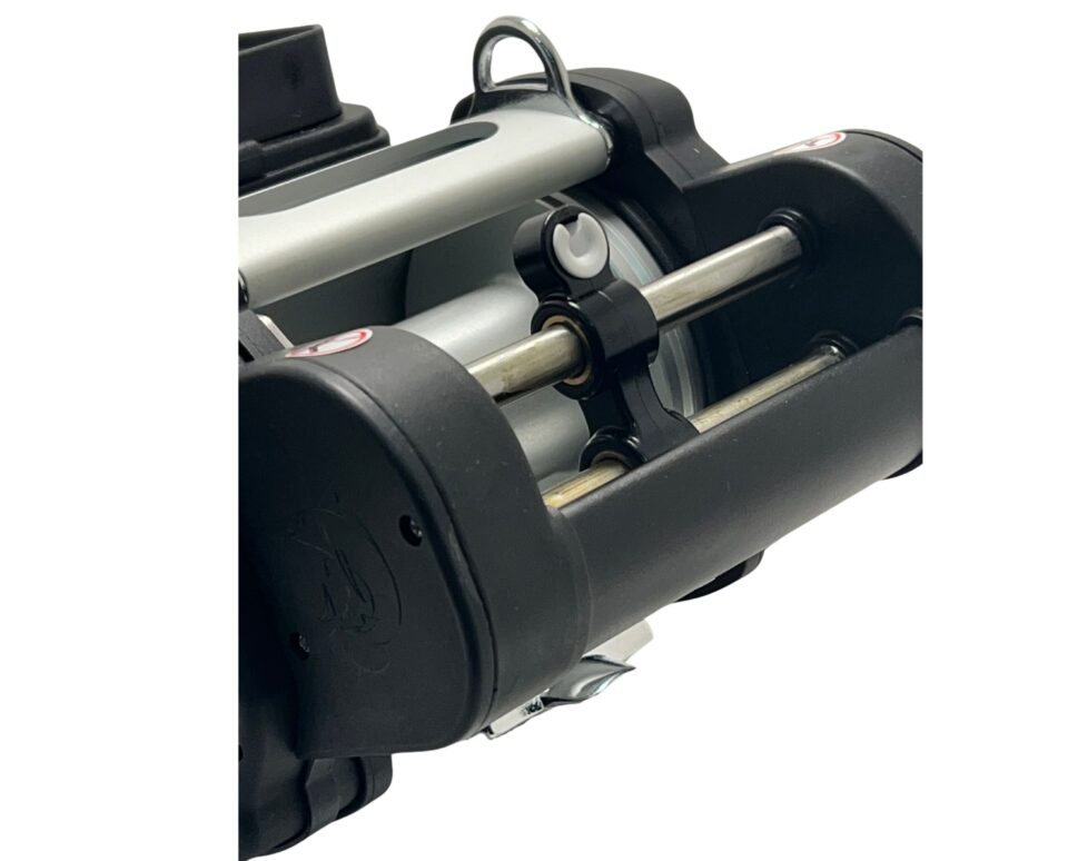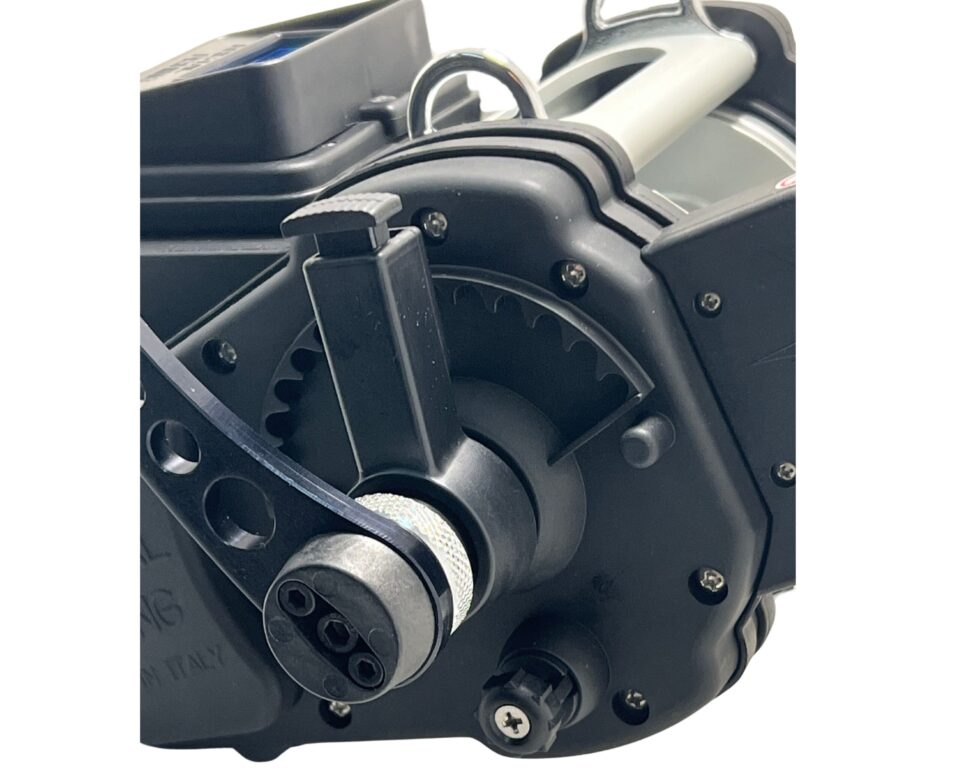 La nuova funzione Override Manuale consiste in una maniglia che consente, in caso di necessità, d’aiutare il mulinello per il recupero di prede particolarmente impegnative. Il rapporto 1 ad 1 ed il movimento antiorario della manovella dell’Override manuale permette di sviluppare una trazione importante che va ad aggiungersi a quella del mulinello. La manovella agevola inoltre gli aggiustamenti della lenza calata.