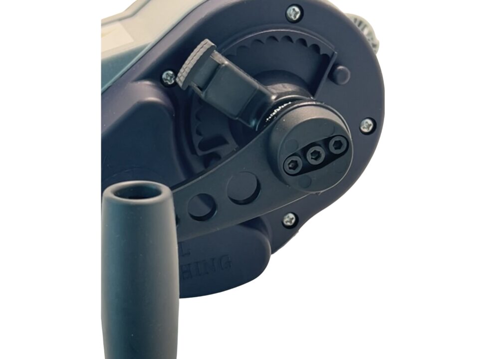 La nuova funzione Override Manuale consiste in una maniglia che consente, in caso di necessità, d’aiutare il mulinello per il recupero di prede particolarmente impegnative. Il rapporto 1 ad 1 ed il movimento antiorario della manovella dell’Override manuale permette di sviluppare una trazione importante che va ad aggiungersi a quella del mulinello. La manovella agevola inoltre gli aggiustamenti della lenza calata.